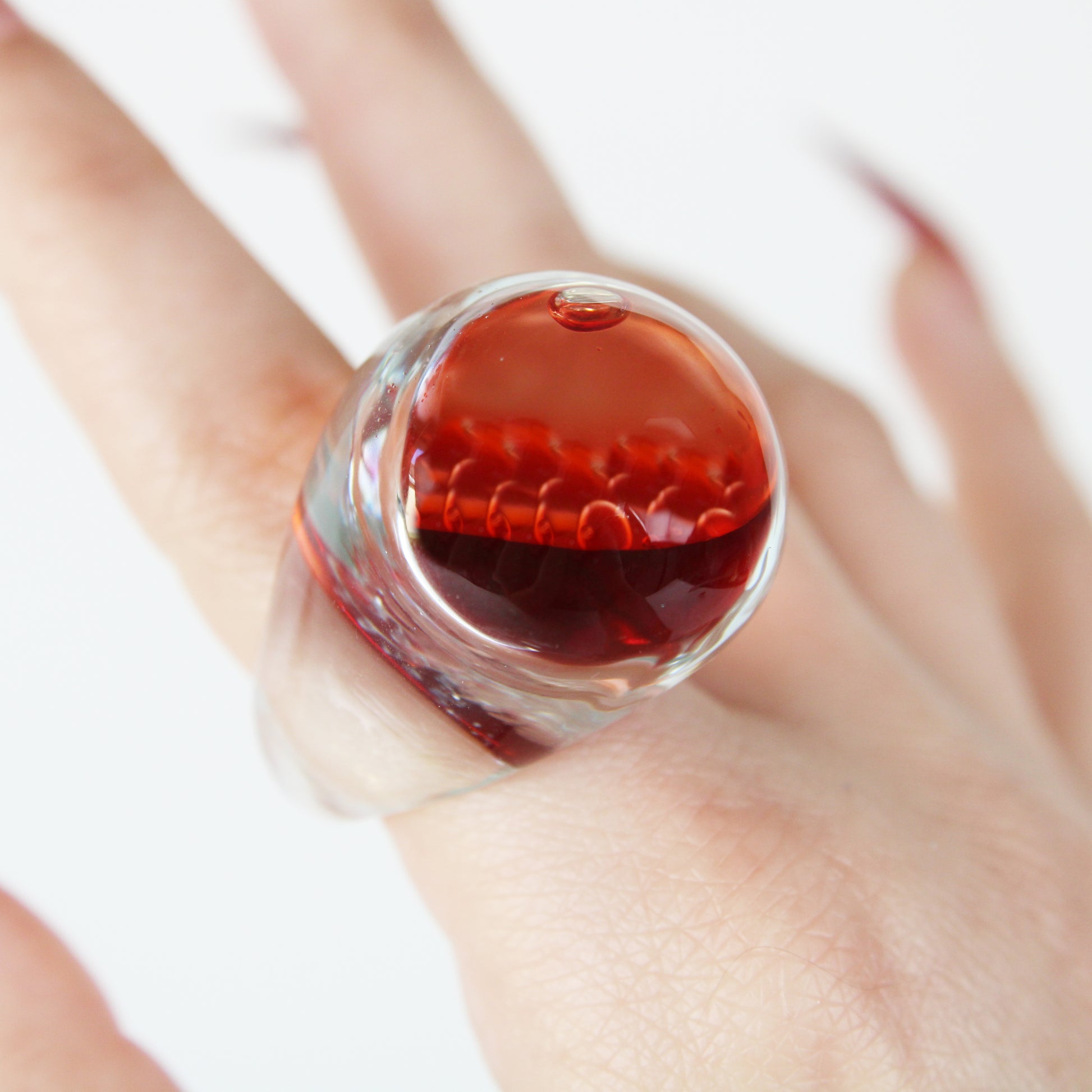 Inspired by the iconic ’90s lava lamp, the Lava Ring Bloody contains water and oil to create a mesmerizing effect. Just give it a shake to see the magic.