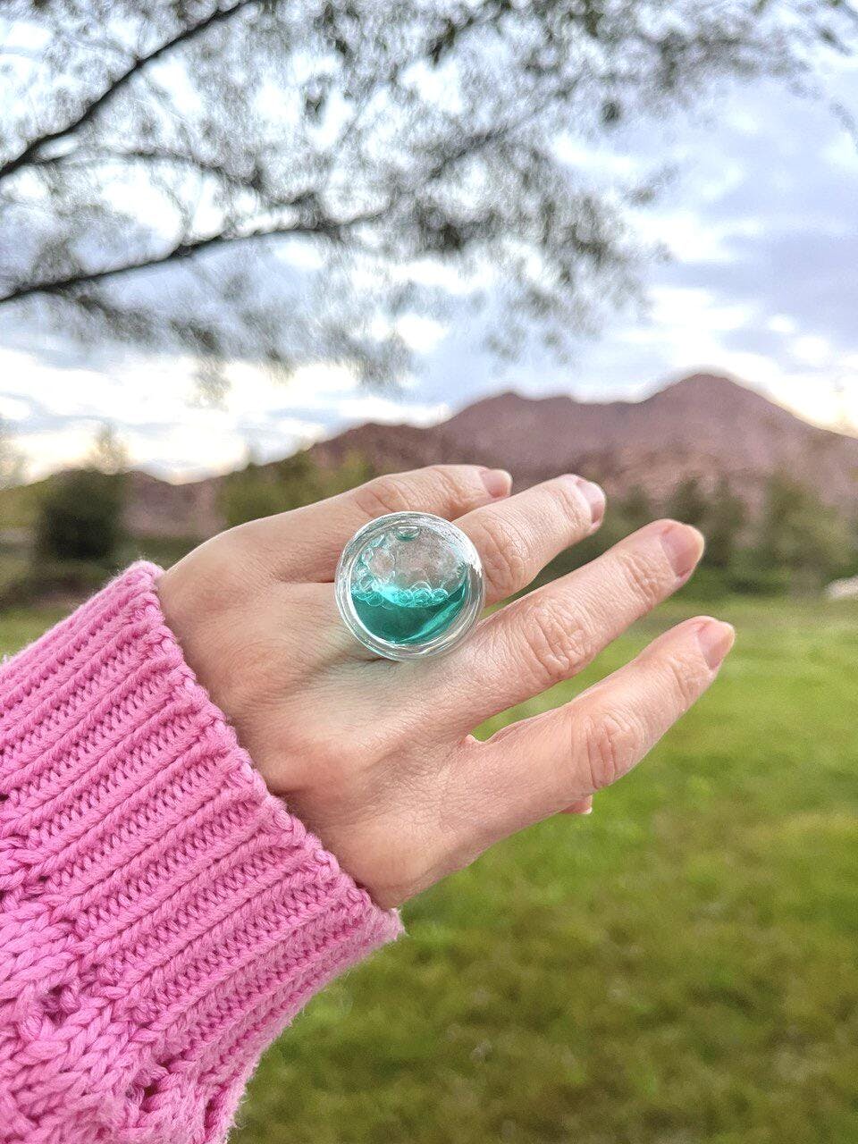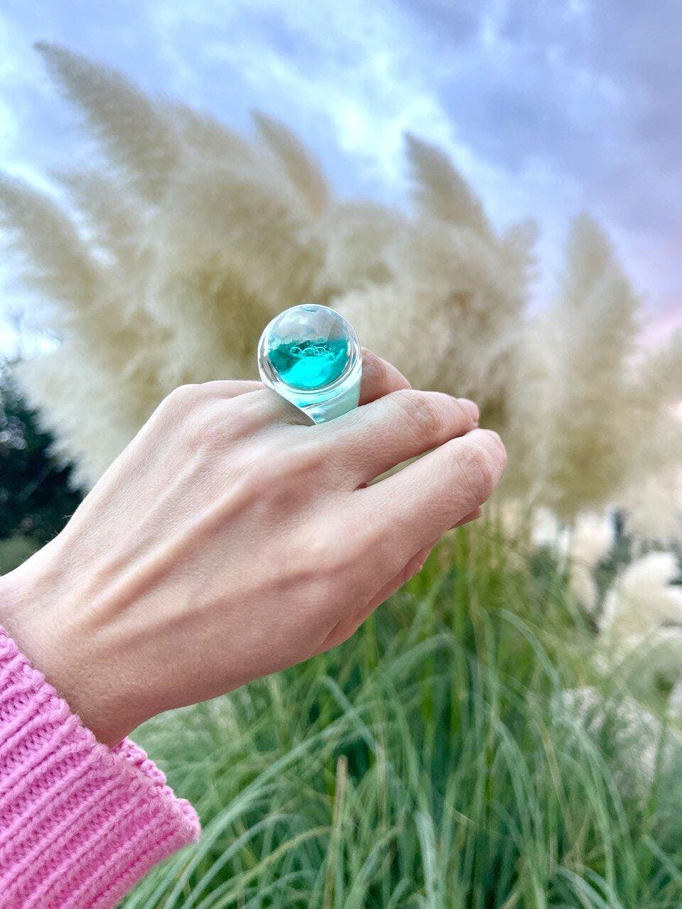 Inspired by the iconic ’90s lava lamp, the Lava Ring Lagoon contains water and oil to create a mesmerizing effect. Just give it a shake to see the magic.
