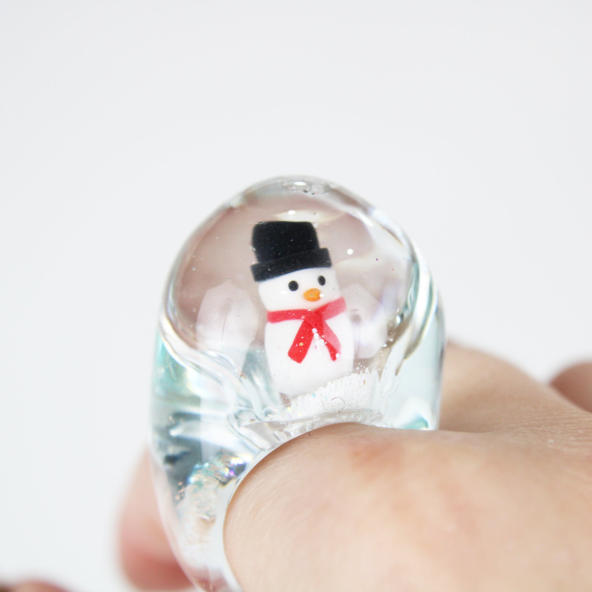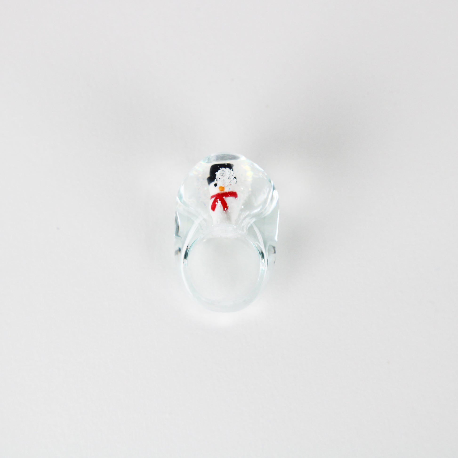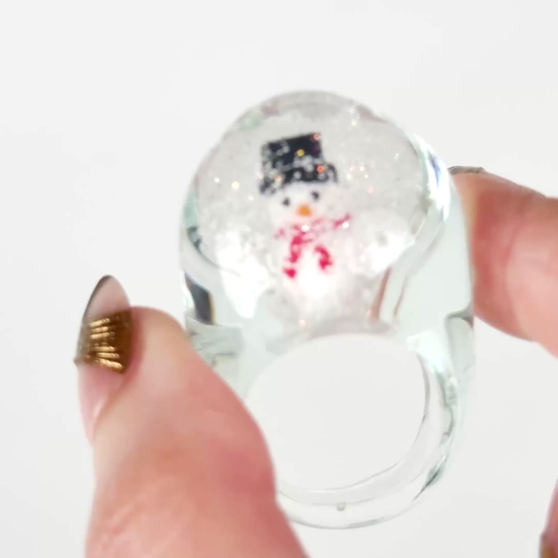 For the nostalgia lovers! The Snow Globe Ring Snowman has a beautiful snow globe with a handmade snowman figure, water, and glitter inside. Just shake it, watch it, and enjoy!